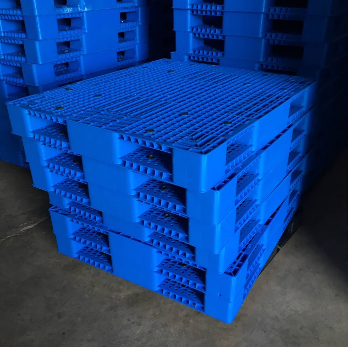 第三、產(chǎn)品的結(jié)構(gòu)在不斷改進,相對于早期粗老笨重的托盤,目前的主流托盤更注重在力學(xué)結(jié)構(gòu)的改進,更科學(xué)更合理的產(chǎn)品結(jié)構(gòu)會適當(dāng)?shù)慕档陀昧铣杀尽?br /> 第四、產(chǎn)品工藝在改進,早期的雙面托盤受注塑機鎖模力的限制多以二次焊接為主,為了保證托盤的強度只能從重量上想辦法。現(xiàn)在注塑機的鎖模力大大提高,均采用一次性注塑成型,相同結(jié)構(gòu)的托盤使用更少的材質(zhì)即可達到相同的載重要求。